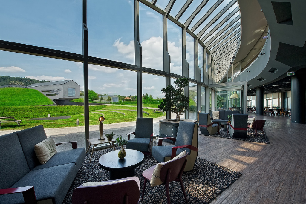 | SPECIALS | You will be in awe of the architectural design. The exceptional organic architecture with the protruding basalt-black facilities seeps into the wine-growing landscape. The immediately recognisable style of Hungarian architect István Bársony is splendid. |