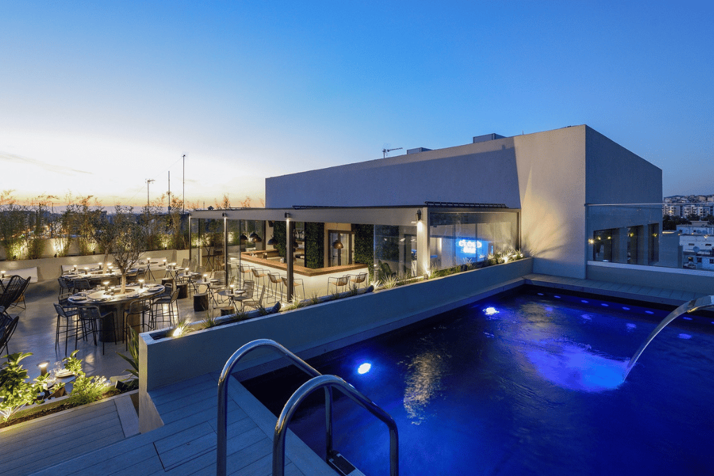 | SPECIALS | Overlooking Thessaloniki, the Roof Garden and Club Bar can transform into a spectacular event venue. Attendees will appreciate the fresh air and scenic vistas. |